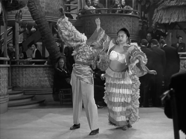 In Rumba Sola, Garcia collages herself into a black and white Hollywood film, which transports her to 1939 via green screen technologies and costuming. She embodies the dance of Cuba, the Rumba, which is traditionally danced with a partner. In subverting the choreography, Garcia performs it solo, executing each step from the memory of being led, compositing her body over the original female performer by tracing her movements on the screen.