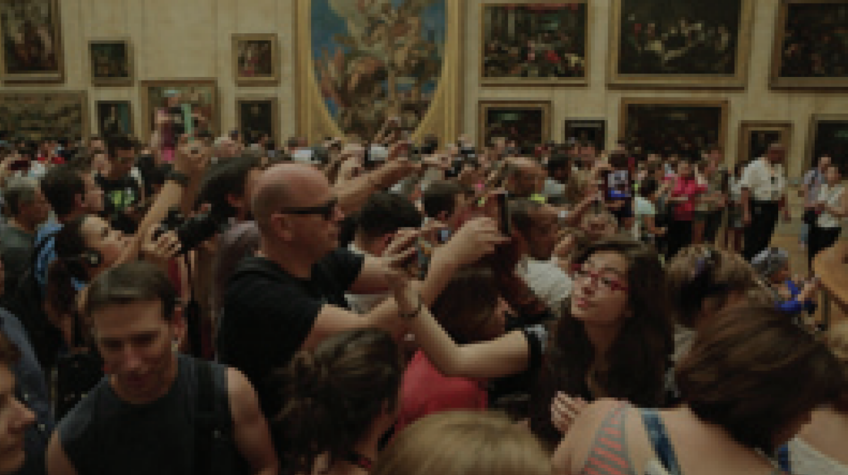 In the scrum of seething bodies busily filming the painting or themselves with their cameras, we catch a glimpse of a person focused and absorbed, who stands, in a sense, unprotected, and who perhaps is in a state not dissimilar to La Gioconda herself. Leonardo’s highest aim, he said, was to ‘depict the state of man’s soul’. Not a momentary emotional state but man’s inner life. When we watch these people who have made a choice to wait, we too can feel that they are in contact with their souls.
