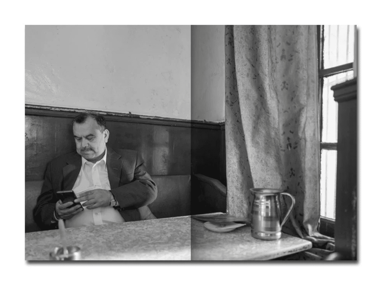 ‘As a child I spent a considerable amount of time in the city of Shimla in Northern India where my father was a research scholar at the Indian Institute of Advanced Study. A visit to the Indian Coffee House some three kilometres walk away was often a part of our late afternoon routine. Now more than 40 years later it endures, largely unchanged. Its atmosphere, patrons, and political conversations remain, preserved as a workers’ cooperative born from colonial exclusion. It continues to function as an informal public space where democratic debate and the creation of cultural capital are sustained outside of an institutional setting. My work traces its continuity as a quiet civic monument and acknowledges both the personal and national history that it embodies.’ – Yask Desai